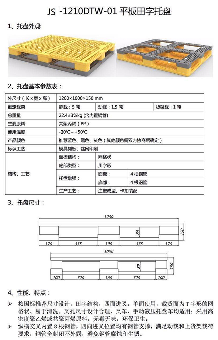 2、塑料托盤產(chǎn)品尺寸誤差正負2%,重量誤差正負3%,均屬于企業(yè)標準允許的范圍。